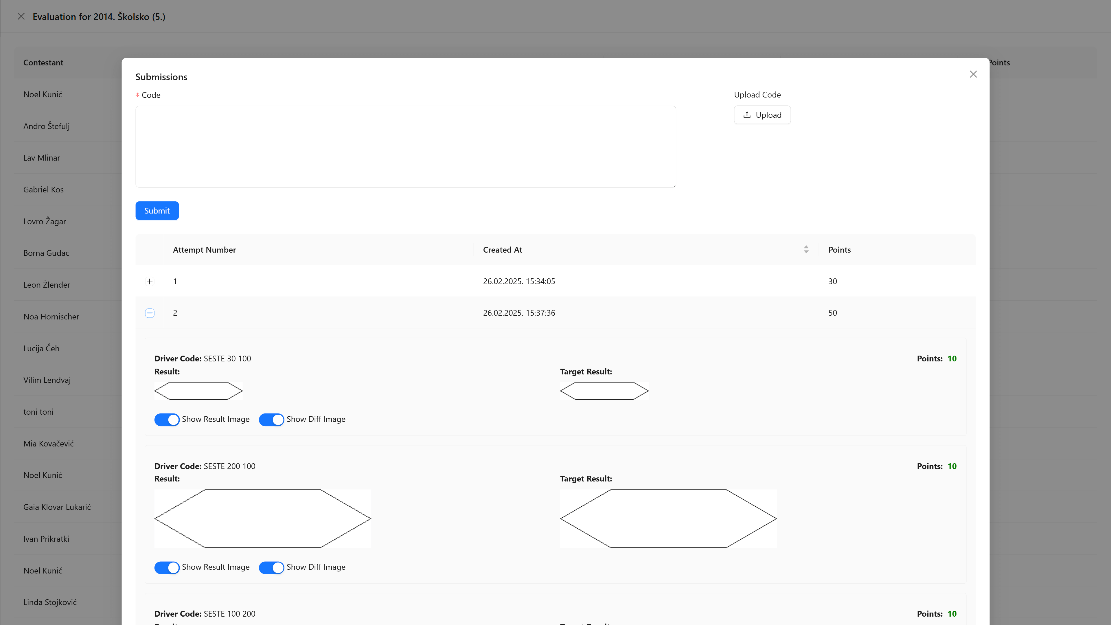 Nastavnici postavljaju kriterije i testove; sustav automatski provjerava rješenja i predlaže bodove.